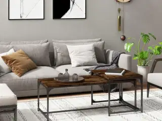 Sofabordssæt i 2 dele massivt fyrretræ brun