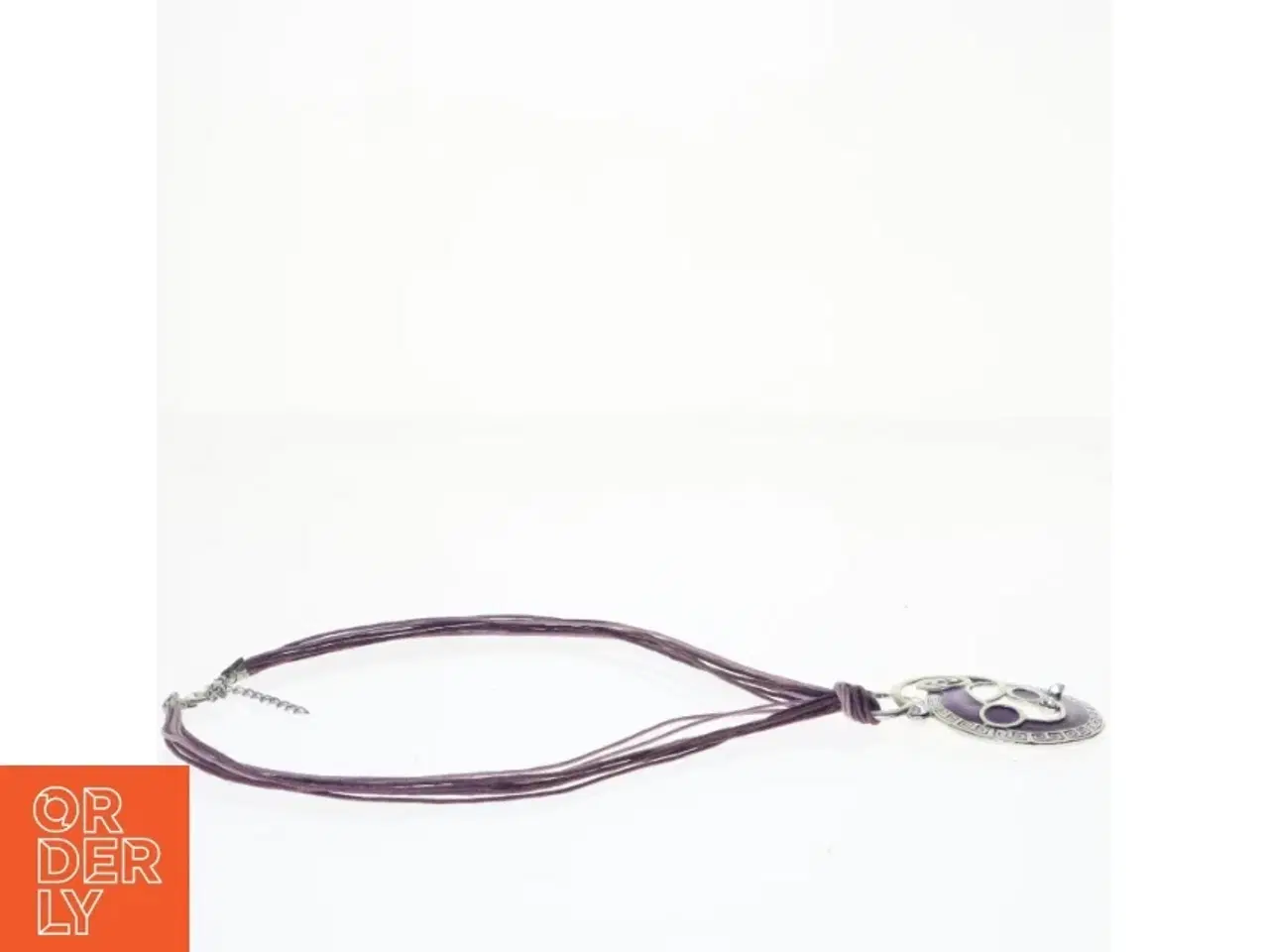 Klik på 'Se annoncen hos forhandleren' for at se varen i vores webshop Halskæde til damer med et rundeformet vedhæng. Vedhænget har indlagte lilla sten og dekorative mønstre. Halskæden består af flere tynde lilla stropper sammenholdt med en metalspænde. Brand: Ukendt Farve: Lilla Stand: 80 - Vi sender til hele landet for 49 kr. Leveringstiden er 1-3 hverdage. Du kan også gratis hente den på vores lager på Industrivej 10 i Slangerup. Er du i tvivl om varen stadig er til salg? Klik på knappen "Se annoncen hos forhandleren" for at se den i vores webshop. Kan du se den der, er den stadig til salg Orderly er en ny måde at købe brugt på. Vi har alle vores sælgeres ting på vores centrale lager. Derfor kan du være helt sikker på at få dine ting - og du kan samle flere ting på tværs af sælgere og kun betale én gang fragt.