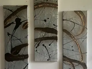 Abstrakt Akryl Malerier Sæt med 2 stk uden rammer. Størrelse : 30 x 40 cm Fragt : Deles 35 kr hver Se flere malerier på min hjemmeside. www.abstrakte-malerier.dk