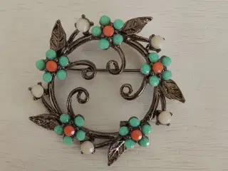 Broche med 9 røde sten broche med klare sten