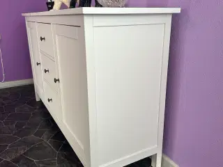 Rigtig pæn og velholdt træ skænk Der er lavet 2 huller på bagvæggen til tv ledninger, ses på billedet. De ses ikke normalt, når der er noget sat på hylden