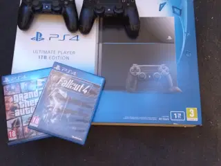 Sælger en PlayStation 4 Pro i god og velholdt stand. Konsollen fungerer perfekt og er blevet passet godt på. Medfølger: • PlayStation 4 Pro • 2 originale DualShock 4 controllere • 3 spil: • Star Wars Battlefront • Mafia III • Assassin’s Creed Origins • Original emballage Alt er testet og virker som det skal. Røgfrit hjem. Kan afhentes eller sendes på købers regning. Skriv endelig ved spørgsmål.