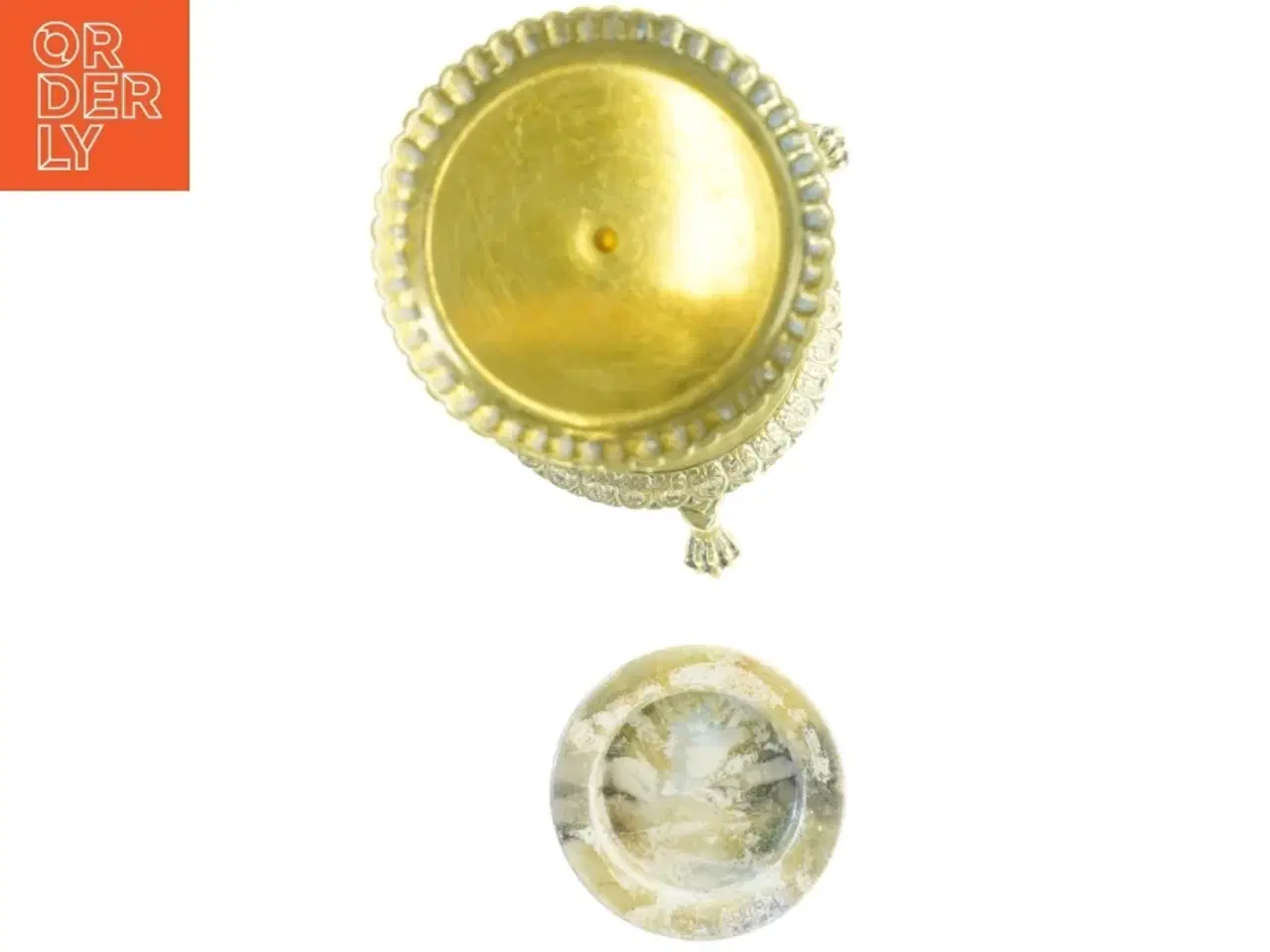 Klik på 'Se annoncen hos forhandleren' for at se varen i vores webshop Dekorativ, antik lysestage fremstillet i messing. Lysestagen har detaljeret ornamentering og tre små fødder. Der er synlige aldersrelaterede brugsspor som patina og overflade ridser. Kan også bruges som blomsterstander eller piedestal. Brand: Ukendt Farve: guld Stand: 60 - Varen har mindre spor fra almindelig brug (Se billeder) Vi sender til hele landet for 49 kr. Leveringstiden er 1-3 hverdage. Du kan også gratis hente den på vores lager på Industrivej 10 i Slangerup. Er du i tvivl om varen stadig er til salg? Klik på knappen "Se annoncen hos forhandleren" for at se den i vores webshop. Kan du se den der, er den stadig til salg Orderly er en ny måde at købe brugt på. Vi har alle vores sælgeres ting på vores centrale lager. Derfor kan du være helt sikker på at få dine ting - og du kan samle flere ting på tværs af sælgere og kun betale én gang fragt.