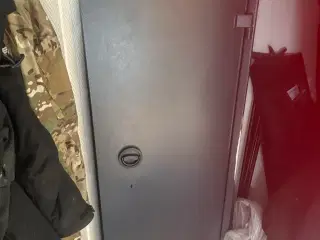 Højde: 145 Brede: 35 Dybde: 30 Vægt ca: 90 kg Ekstra boks indbygget i toppen. Kan afhentes for 2500 kr. Der medfølger 2 nøgler. (Det er det høje skab som sælges og det er “Skafor Blå”)
