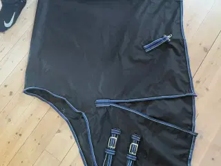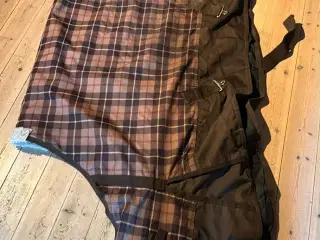 Str 95 Mulighed for liner /hals Kan sendes 50kr Kan sendes Velsiddende let overgangs/regndækken i en ny, skøn mørkegrøn nuance, Pine Grove. Dækkenet er med tapede sømme, høje skulderslidser, stor haleflap og en ca. 10 cm neoprenpude som aflaster ved manken. 4 små læg bagpå former dækkenet anatomisk, hvorved det øger stabiliteten Dækkenet er med 600 denier ripstop yderside og glat, 420 denier nylonforing, som minimerer risiko for slidskader, da stoffet glider fint mod hestens pels. Det lette 0/50 gram fyld mindsker risiko for kondens ved bla. temperaturskifte, i forhold til almindelige regndækkener. Light dækkenet er med 50 gram fyld på ryggen og uden fyld på sidderne. Dækkenet er med dobbelt bringelukning, med spænder og karabinhager. Karabinhagerne spændes i en af de tre D-ringe, som giver mulighed for en nem størrelses tilpasning. Der er regulerbare, elastiske bagbensstropper. Krydsgjordene er med elastisk indsats, samt gummiringe ved gjordspænderne. Der er mulighed for at tilkøbe hals til dækkenet, som monteres i den kraftige sandwich velcro. Hals købes særskilt. Der kan monteres Combinator liner i dækkenet, som spændes fast i ringe. Linere købes særskilt. Pine Grove med kantbånd og krydsgjorde i Pine Grove, white og Starlight blue Vandtæthed 3000MM Åndbarhed 3000MVT