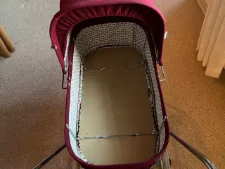 Flot og velholdt dukkevogn, monteret med stof a la bredriflet fløjl