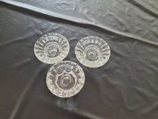 fra Holmegård m. glasholder til fyrfadslys for bedre lysafgivelse 2 stk H 9 cm pr stk 75 kr 5 stk H 7 cm pr stk 50 kr Samlet pris 275 kr
