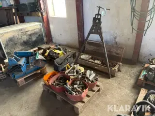 Værktøjsskabe 2 styk med indhold Mål og vægt Længde: 40cm Bredde: 60cm Højde: 140cm Læssehjælp: Læssehjælp efter aftale med sælgeren 2 Værktøjsskabe med indhold