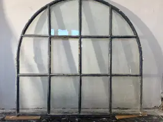 Antikt støbejerns staldvindue. Nogle glas er revnet eller mangler. Kan blive rigtig smukt med en gang pudsning / sandblæsning og en gang maling. Og måske isæt spejle i stedet for glas