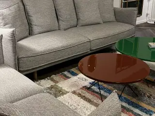 Flotte rokoko møbler med flotte udskæringer, købt hos La Chicq. Stolene er i ægte koskind.. Stoffet på sofaen er velour.