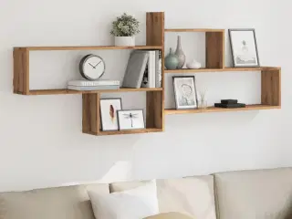 Denne bogreol er en god måde til at holde orden i dine ting og sager, samtidig med at den er et tidløst supplement til din indretning. - Slidstærkt og robust materiale: Konstrueret træ har en enestående kvalitet med en glat overflade, og det er både stærkt, stabilt og fugtafvisende. - Rigelig opbevaringsplads: Bogreolen har åbne hylder, der giver rigelig opbevaringsplads til at opbevare og fremvise dine bøger, magasiner og dekorative genstande, samtidig med at den giver dit indretning et løft. - Pladsbesparende design: Opbevaringsreolen kan vægmonteres for ekstra opbevaringsplads. På den måde kan du maksimere din gulvplads og holde området rent og ryddeligt. - Mange anvendelsesmuligheder: Displayreolen passer nemt ind i ethvert hjem. Du kan placere den i stuen til fremvisning af pyntegenstande, på kontoret til opbevaring af bøger og mapper, i soveværelset til opbevaring af hverdagsting, eller i kælderen til opbevaring af andre ting og sager. Godt at vide: - Skruer og rawlplugs til væggen medfølger ikke. Vi anbefaler, at du anvender skruer og rawlplugs, der passer til dine vægge. Hvis du er i tvivl, skal du søge professionel rådgivning. Læs og følg hvert trin i instruktionerne. - Farve: Røget egetræ - Materiale: Konstrueret træ - Mål: 104,5 x 10 x 43 cm (B x D x H) - Maksimal bæreevne: 30 kg - Montering/samling påkrævet: Ja