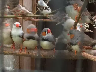 Forskellige finker sælges fra 30,-kr. pr. stk. Der er zebrafinker, mellemstore og små i forskellige farver, ringastrild, tornastrild, guldbrystet astrild, safranfinker.