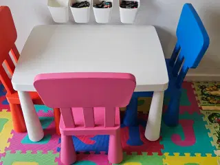 3 børneborde med dekoration på pladen Bordets højde 47 cm. Bordpladens diameter 51 cm. jeg har 2 med en frø og 1 med fuglen 200 kr. pr. stk