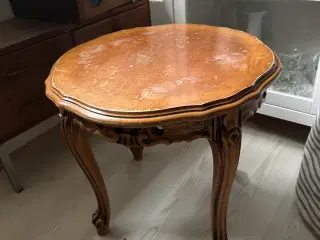 Rigtig fint hvidt lille rundt træbord med glasskab. 60 cm i diameter og 60 cm højt.