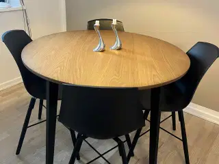 Stabilt spisebord med mulighed for forlængelse med tillægsplader. Bordet er 200x100 og tillægspladerne er 45 cm hver. Kan afhentes i Risskov