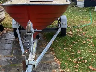 der har uheldigvis stået et forkert nummer men er rettet nu:) Ukendt jolle, 3.80cm 2 lags bund, synkefri, malet for 1 år siden. Ligger godt i vandet, meget stabil båd. Starter nemt, serviceret for ca 1 år siden. Hjemmelavet vogn som passer på almindelig boogietrailer.