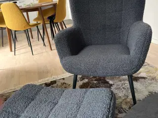 Behagelig lænestol i stof med tilhørende hynder