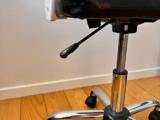Grå kontorstol på hjul. Få pletter på sædet. Ikke ryger hjem, men med kat.