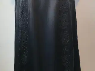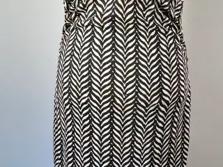 Superflot mønstret maxi-kjole med løst bånd, der er elastik i taljen Materiale: 95% viscose, 5% elasthan Mål: Brystvidde: 108 cm Længde: 130 cm Talje: 76 cm - kan strækkes til 108 cm Hoftevidde: 120 cm Omkreds ærmegab: 56 cm Mål er taget, hvor kjolen ligger fladt, stoffet kan give sig en del Bud fra kr 350 plus porto Afhentning: København, Østerbro