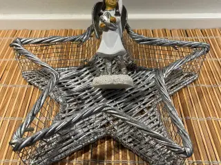 Dekorativ sølvfarvet stjernekurv+ hvid engel