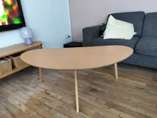 Flot rundt sort sofabord. Bordpladens diameter er 60 cm og højden er 60 cm. Son det ses på billedet er der en praktisk hylde. Sælges da jeg ikke længere har plads til det. Står i Pandrup