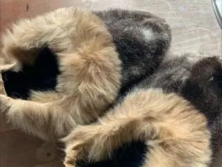 Clou forede hjemmesko der er bløde og varme. Der er små dupper under sålerne. Materialet er ikke angivet - men det er ikke skind. De er helt nye - kun prøvet, og de sælges da de er for små. De kan hentes i Tårnby.