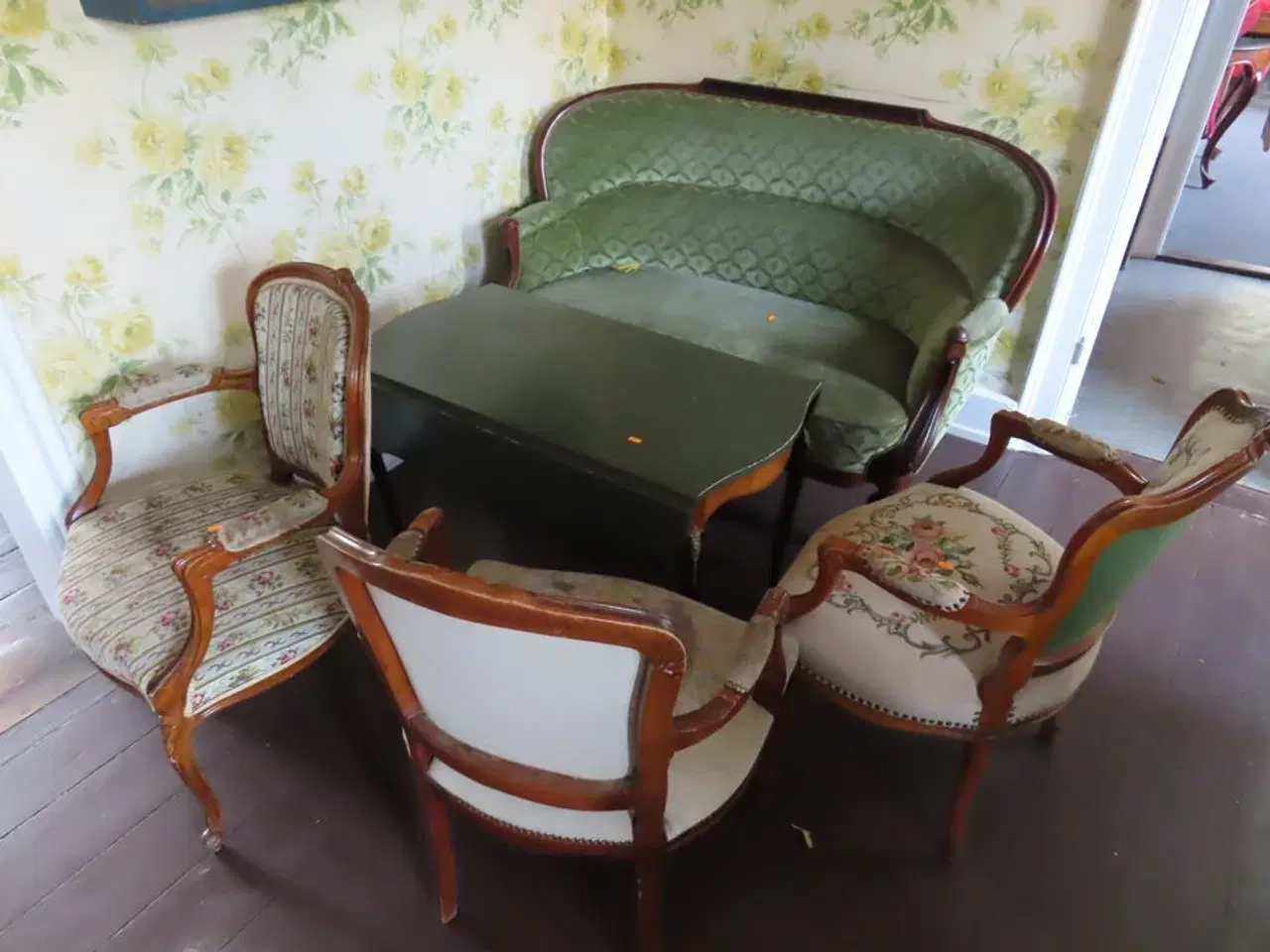 Rokoko møbler - Sofa, bord og 3 stk. stole