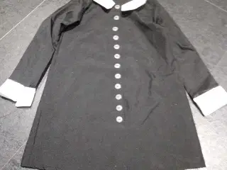 Flot prinsessekjole i rød og hvid med røde prikker. Kjolen har pufærmer med røde bånd og en stor sort blomst ved halsen. Skørtet har flere lag, inklusiv organza, rød satin og stof med røde prikker samt en sort flæsekant. Kjolen har en masse forskellige detaljer. Der er massere af brus i skørtet Str. 6-9 år. Prinsessekjole, til leg & udklædning. Det er mig selv som syer kjolerne, så hver kjole er unik. Nye og ubrugte. Mange fine detaljer. Kjolerne er en blanding af vintage og nye stoffer/ tyl og bånd. Med massere af strut og bølger i skørtet. Kjolernes top kan give sig, da overdelens stof er elastisk materiale, hvorfor den kan trække sig ind og udvides og derfor holde længere, så man kan vokse i den. Længden af skørtet bliver så afhængig af barnets højde. Kjolen kan vaskes på håndvaskprogram i vaskepose, og hænges op våde. Man skal dog forvente at tyllen bliver lidt slap og bånd evt. skal stryges mens kjolen er våd, med viskestykke mellem bånd og strygejern.. Tyllen kan evt. piftes op med lidt hårlak. Stoffet er forvasket.