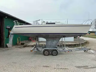 Den nye model fra 1987. Med lukket kahyt til agterkøjen. 2 ekstra vinduer der kan åbnes. 1 Ejer. Sejlbåden er købt og hentet på Gotland i Sverige. Vi hentede den i vores sommerferie og sejlede den til Kerteminde. Det er en dejlig familie-båd med masser af plads til både børn, børnebørn og voksne. ● Motor: Yanmar 20HK fra 1987 model 20M230. Dieseltank på 60 liter. ● Storsejl fra 1987. ● Bompressening med lazyjacks. ● Rullegenua fra 2000. ● 3 stk. nye akumulatorer fra 2024. ● Sprayhood og cockpit-telt er fra 2007. ● GPS 126/128 Garmin Marine navigator. ● Silva 3200 ekkolod (defekt). ● Autohelm Autopilot. ● Wallas oliefyr 1800/2400. Brændstof er lampeolie. ● Vibocold køleanlæg med lille frostboks i køleboks. ● Cockpit-bord der kan stuves væk i kistebænk. ● I ankerbrønd i stævnen er der 2 gasflasker på 3 liter med læksøger glas og diverse tovværk. ● Teaktræ indvendig i kahytten. ● Dobbelt agterkahyt med kortbord. Det kan lukkes med skydedør. ● Pantry med to gasblus og ovn med kardansk ophæng. ● Dobbeltvask med fodpumper til fersk- og saltvand. Vandtank med 110 liter. ● Der er meget skabs- og skuffeplads i pantry. ● I salonen er der 2 sovepladser (ryglæn kan slås op). Meget skabsplads med skydelåger samt hylder. ● Der er en trawler-lampe over bordet. ● Mellemgang med garderobeskab og 4 skuffer. ● I styrbord side i mellemgang er toilettet bag en dør. Toilet (ny pumpe i 2025) med septiktank og vask med fodpumpe og skabe. ● I forkahyt er der to lange senge og trekant hynde så der er 2½ køjeplads og meget hyldeplads. ● 2 stk oppustelige rednningsveste ● På søgelænder agter er der holder for påhængsmotor. ● Ekstraudstyr er en Pioner 8 jolle med elmotor og to batterier. Båden sælges som beset og står lige nu på land i Kerteminde