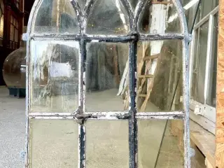 Klassisk støbejernsvindue med buet top og ni ruder i smalle sprosser. De seks øverste ruder monteret i ramme, der kan åbnes. To ruder med revne - uden funktionel betydning. Kit og maling bør evt opfriskes. Bredde: 54.3 cm, højde: 71.1 cm. På lager: 1 Vi har over 6.000 vinduer og døre på lager ved Roskilde. Se derfor også vores andre annoncer eller vores hjemmeside via link her på siden. Søgeord: -------- Jern- og staldvinduer Gamle vinduer Brugte vinduer Klassiske vinduer