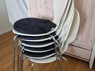 Den ene stol har andre fødder Se billeder. Sælges kun samlet. Spisebordsstol model Trinidad 3298. Tegnet af Nanna Ditzel. Formgivet 1993. Udført i lakeret bøg og med stel i stål. H: 83 cm. | L: 58 cm. | D: 47,5 cm.