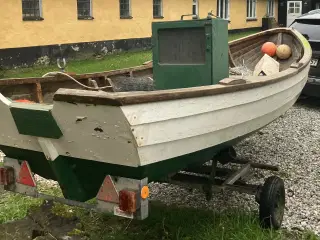 Fin gammel træ jolle med styrehus sælges Fin gammel træ jolle med nogle år på bagen udbydes hermed til salg da vi desværre ik får den brugt nok. Båden har været oppe i år og fået et godt lag bundmaling. Dog er der noget træværk på huset der trænger til en kærlig hånd Der er skærm i til ekko lod og GPS Dog skal der kigges på lidt træværk på styrehuset og lidt el Prisen kan være til forhandling 26 fod 20hk sabb motor køre som en drøm Den sælges med bådplads i Sæby Ved interesse/spørgsmål så kontakt mig her eller 60810312