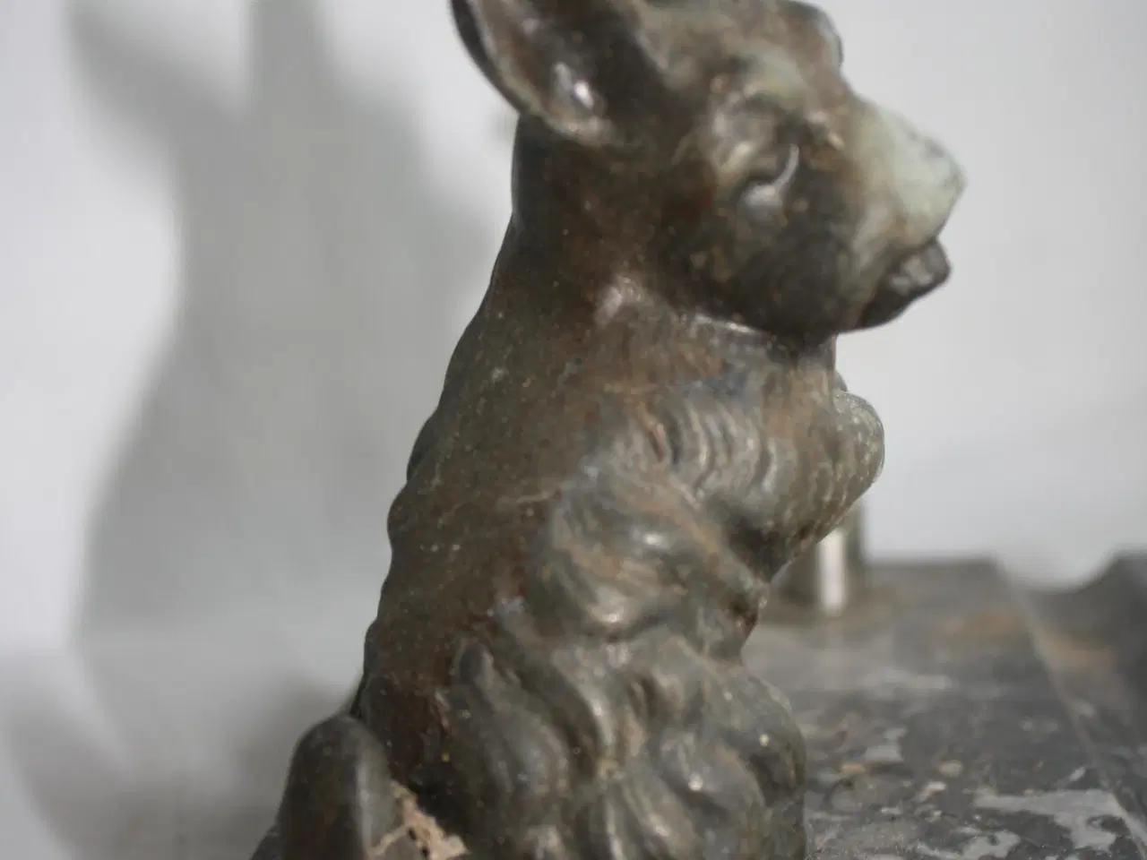Skrivebordsgarniture på marmorplade Pladen måler 18 x 12 cm Hundens højde ca 10 cm