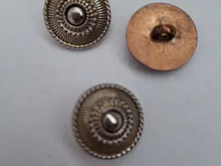 Knapper i forskellige farver, størrelser og designer Store og små knapper til blazere, kjoler, jakker, sweater, børnetøj m.m. A- (Billede 1): Knapper, 2 stk. i brun farve, Diameter: 2,7 cm og 2,3 cm, Pris: 7 kr. B- (Billede 2) i alt 7 sorte knapper, 1 stk. i 2,2 cm, 2 stk. i 2,1 cm, i 2 stk. 2 cm, 1 stk. i 1,8 cm, og 1 stk. i 1,5 cm, Pris: 14 kr. C- (Billede 3): Knapper, 3 stk. i mørkebrun, lysebrun, og grå, Diameter: 2,8 cm, Pris: 6 kr. D- (Billede 3): Forskellige knapper i alt 4 stk. Sort. 2,9 cm Brun 2,9 cm Grå 2,9 cm, og Brun 2,2 cm Pris: 10 kr. E- (Billede 4): Metal knapper, flere, i forskellige design og størrelser, Pris i alt: 30 kr. F- (Billede 5): Metal knapper, flere, i forskellige design og størrelser, Pris i alt: 30 kr. G- (Billede 3): Forskellige knapper, flere. fra 9 mm til 3 cm, Pris: 35 kr. Samlet pris: 100 kr.
