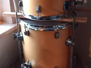 Tama trommesæt med skind fra Remo. Stortrommen er 56 cm., lille tromme på 36 cm., ovenpå på stor trommerne er der en på 30 cm., en på 33 cm. og en på 40 cm.