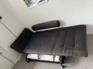 Lækker velholdt BoConcept Futon Sovesofa. Velourstof i flot grå farve med aluben. Ingen tegn på brug/slid. Er blevet brugt som gæsteseng når vi har haft vores forældre overnattende. Sofaen kan bruges som almindelig til hverdag, og slåes ud til en sovesofa ved at lyne to ekstra ben ned bag på ryglænet. Ryglænet slåes derefter ned via klikfunktion. De brede ben sammen med de 2 ekstra ben der kan foldes ud, gør at den er meget stabil at ligge på. Den yderste kvadrat i hver side, på siddepladsen, kan ligeledes klikkes op i etaper, så man enten kan bruge det som armlæn eller for at hæve hovedet ved den der sover yderst i sofaen. Genial på teenageværelset, i studieboligen eller som gæsteseng, hvor liggekomfort og design gerne må gå hånd i hånd ☺️ Fra både røgfrit og dyrefrit hjem. Nypris: ca. 15.000kr Kvittering haves ikke længere. Mål udslået: 195*130 (sovemål) Skal afhentes i Aalborg.