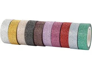 Glitterstickers - Stjerner i SølvTilføj et strejf af magi til dine projekter med vores glitterstickers. Hver pakke indeholder 2 ark (10x24 cm) med selvklæbende stjerner lavet af glitrende specialfolie