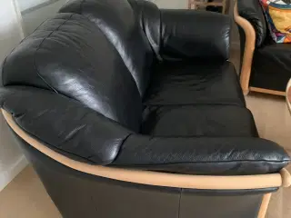 Stilfuld 2 og 2½ personers sofa i god læderkvalitet fra Hurup Møbelfabrik 2 personers sofa måler i længden ca. 170 cm og 2½ personers sofa måler i længden ca. 203 cm Sidde-højde ca. 42-43 cm Sofaerne ingen brugsspor , og fremstår som nye Røg og dyrefrit hjem.