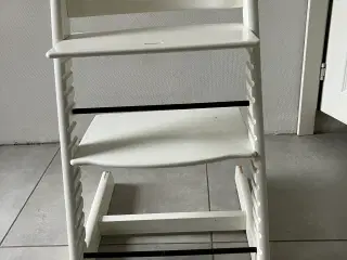 2 stk Trip Trap stole i valnødtræ. Til den medfølger babysæde og stofbeklædning.