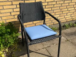 Mønstrede havehynder, kan bl.a. passe til hvide plastic havemøbler, se mål på billeder. Alle 4 hynder for kr. 100,00. Kan sendes eller afhentes i Svendborg.