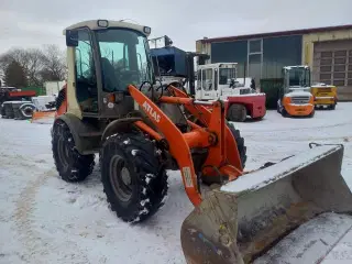 Til salg er vores nye Kramer 350 hjullæsser med ca 3440 driftstimer. - Byggeår 2012 - cirka 3440 driftstimer - god stand og klar til brug - Hydraulisk lynkobling - inkl. skovl og pallegaffel - adræt firehjulsstyring - frem/tilbage på joysticket - Hjælpehydraulik - Firehjulstræk (hvert hjul har sin egen oliemotor) - 20 km/t - Lysanordning iht. StVO - Opvarmning - Yanmar dieselmotor 24 kW (33 hk) - Driftsvægt ca.1700 kg - Højde 1,99m - Bredde 1,20m - Længde 4,08m