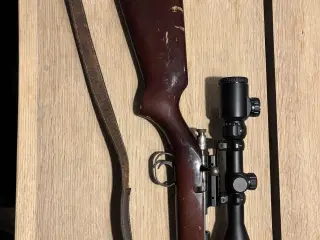 SAI salon riffel kaliber 22LR, 101 cm lang med en pibelængde på 67,5 cm. står bare og fylder i skabet. kræver våbentilladelse.