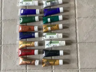 18 akrylfarver, 12 vandfarver, 14 oliefarver og 1/2 l akrylmaling (basis).