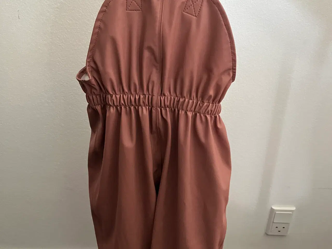Regntøj sæt fra Mikk-Line str. 86, rigtig fin stand uden synlig slid, har dog lidt pletter inde i jakken forneden bag på samt i ærmerne og en lille plet på det ene ben på forsiden. Pletterne er ej forsøgt fjernet, se billederne. Der mangler et elastikbånd i det ene bukseben til at sætte under støvlen, men det har ingen betydning for selve brugen af regnbukserne, da buksebenet godt kan holdes på plads uden på støvlen. Købt fra ny og brugt af et barn. Fra røg, dyr og parfume fri hjem. Til salg flere steder. Pris 130 kr