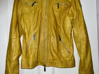 Rockandblue læderlook sort, str: 40 Kraftig blødt emiteret læder. B: 50 cm. Lynlås lukning 2 brystlommer med lynlås 2 sidelommer med lynlås Tryklås rem ved hals Blank sort foer Næsten som ny.