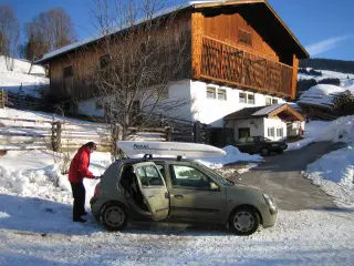 Fin og rummelig tagboks, som er monteret med Thule wingbar. Der er masser af plads til ski / eller bagage. Måler ca L:180 B:85 H40