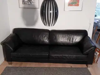 2 personers lædersofa med sæbebehandlet egetræstel. Sendes ikke.