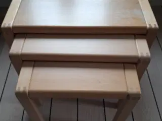 Indskudsborde 1 sæt bestående af 2 borde Træben der let skrues af/på. Der er mindre afslag på det store bord. Se mål på billeder