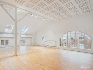 - Op til ca. 35 arbejdspladser - Eget indgangsparti fra Strandboulevarden - Intern trappe mellem etagerne - Ventilation - Badefaciliteter I denne charmerende rødstensejendom med sprossede vinduer og charmerende detaljer er det nu muligt at få kontor på i alt 400 m² med eget indgangsparti fra Strandboulevarden. Lejemålet er fordelt på to plan på hver 200 m² og kan indrettes med op til ca. 35 arbejdspladser. En intern trappe sikrer god sammenhæng mellem mezzanin og underetage. Mezzaninen rummer storrumskontor samt to tilstødende kontorer, der vender ud mod Strandboulevarden. Herudover to toiletter. Underetagen er indrettet med storrumskontor, mødelokaler og køkken samt to toiletter, hvoraf det ene har badefaciliteter. På begge etager er der ventilation, som sikrer et særdeles behageligt indeklima. Den synlige rørføring skaber kant og giver et råt touch til det lyse lejemål. Fra Nordhavn metrostation er der blot et enkelt stop til Østerport St., hvorfra der kører flere S-togslinjer, ligesom der er adgang til regionaltog/InterCity tog og flere buslinjer. Der er desuden ganske kort til vandet ved Nordhavn Bassin og de mange hyggelige kanaler i området. Det er muligt for at leje parkeringspladser i ejendommens gård. Lejemålets energimærke er angivet til: C