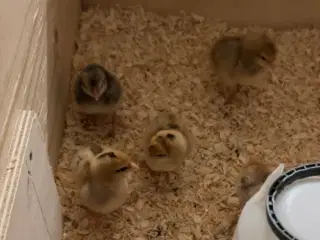 Skrukhøne med 6 daggamle kyllinger fra økolandbrug søger nyt hjem.